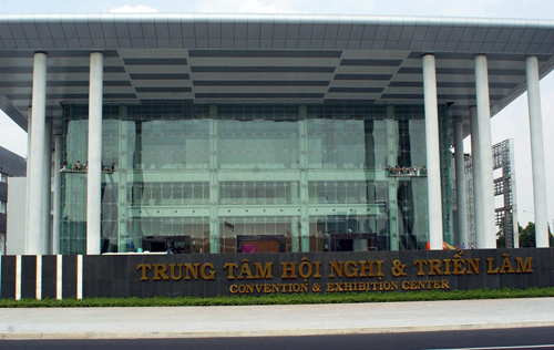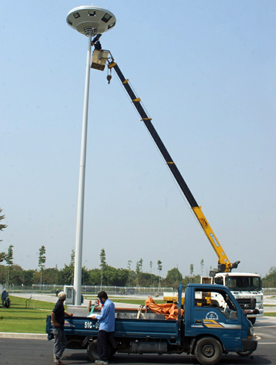 Hệ thống đèn chiếu sáng của trung tâm đang hoàn thiện.