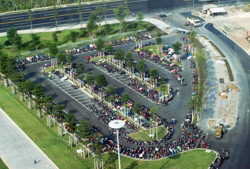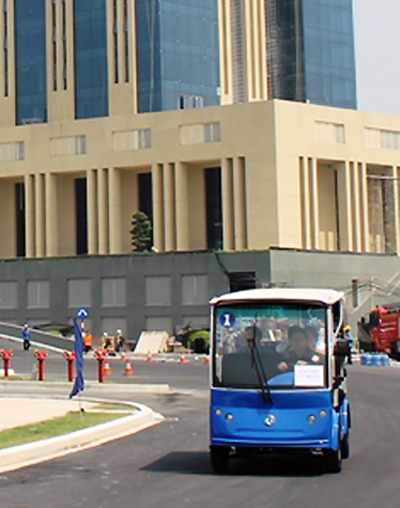 Xe điện đưa đón nhân viên vào Trung tâm hành chính.