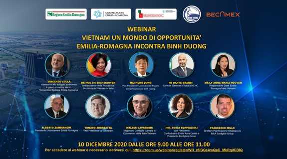 Webinar thu hút đầu tư giữa tỉnh Bình Dương và Emilia Rogmana.